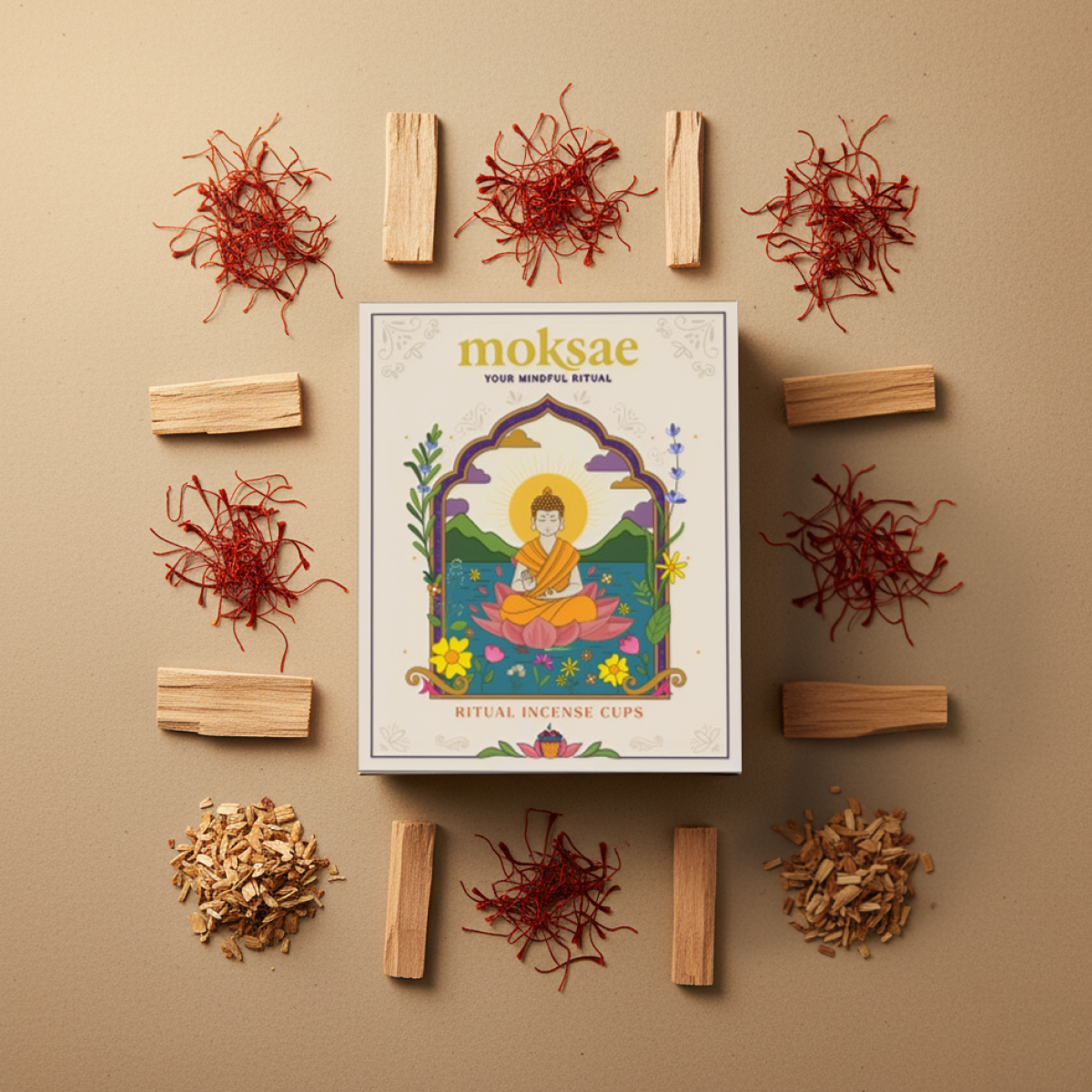 Moksae Incense Cups are crafted from natural cow dung and infused with pure essences like Oud, Lemongrass, Jasmine, and Camphor. They are 100% biodegradable, chemical-free, and eco-friendly, making them safe for you and kind to the earth.